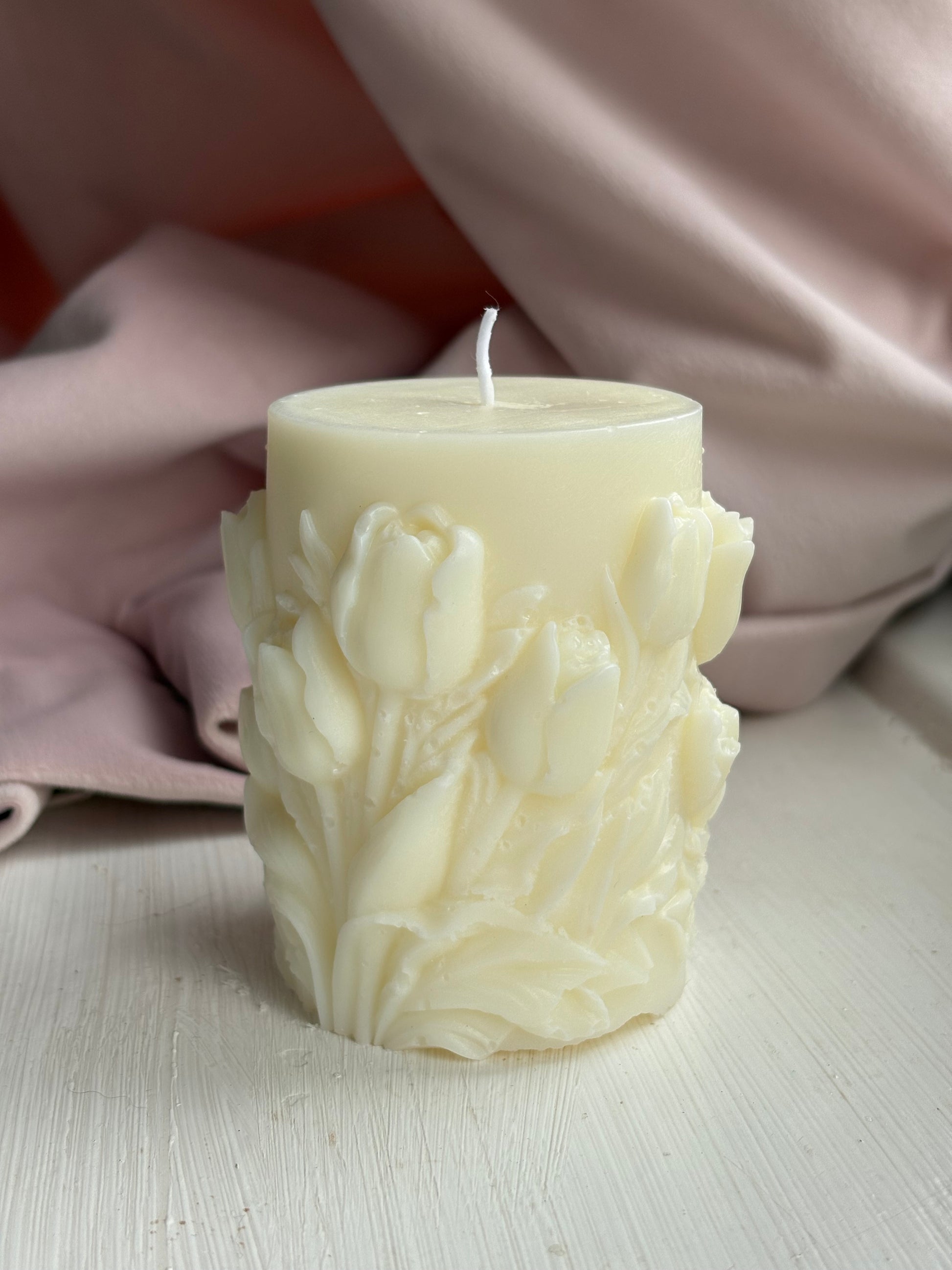 Vanilla Floral Print Pillar Candle
